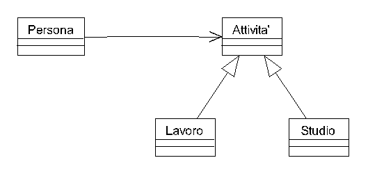 In compenso funziona, e si basa su un uso corretto dell'ereditarietà, che in figura 2 è utilizzata per modellare relazioni immutabili: lo Studio sarà sempre una Attività, il Lavoro Autonomo sarà sempre un Lavoro. Viceversa, utilizziamo l'aggregazione ed il polimorfismo per modellare relazioni mutevoli, come le attività correnti di ogni Persona. Tenetelo sempre presente nei vostri progetti reali.